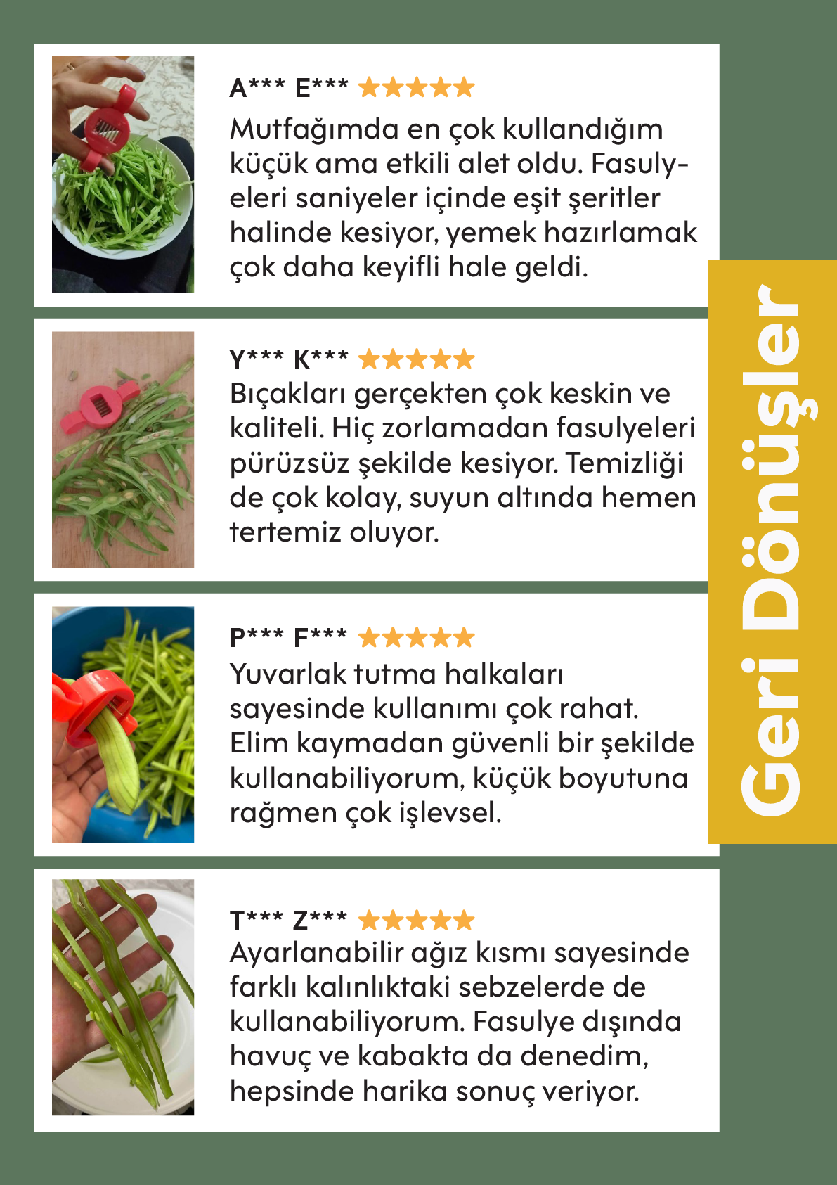 3 Adet PRATİK FASULYE DİLİMLEYİCİ -